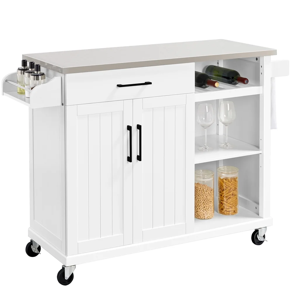Yaheetech Kitchen Island Cart with Stainless Steel Top & Storage, Kitchen Island on Wheels with Drawer & Open Shelves,White