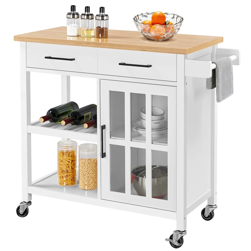 Yaheetech Mobile Kitchen Cart with Cabinet & Open Shelves, White