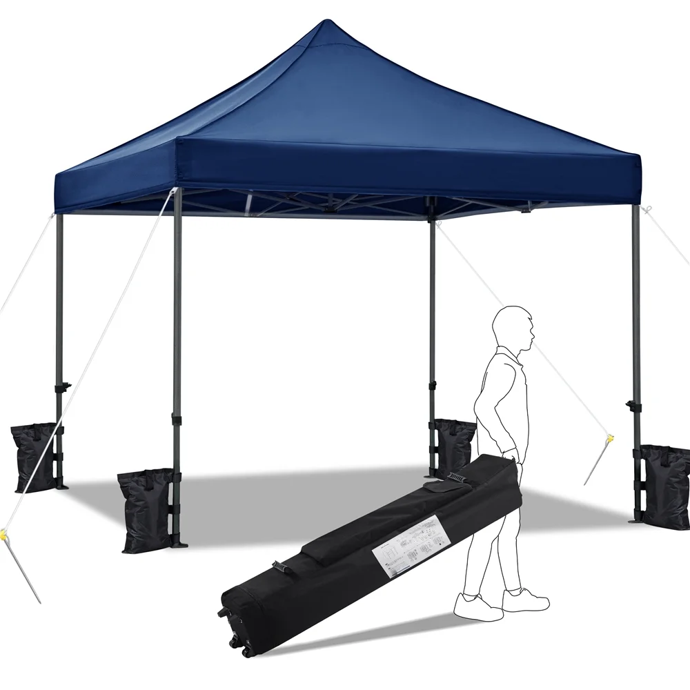 Yaheetech 10x10 ft Pop Up Canopy Tent with Wheeled Carry Bag,Navy Blue