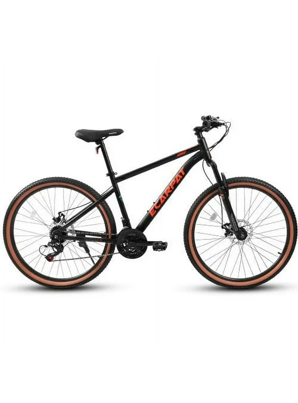 Mountain Bike 24 Inch Wheel, 21-Speed Disc Brakes Trigger Shifter, Carbon Steel Frame Youth Teenagers Mens Womens Trail Commuter City Snow Beach Mountain Bicycles(Black+Red)