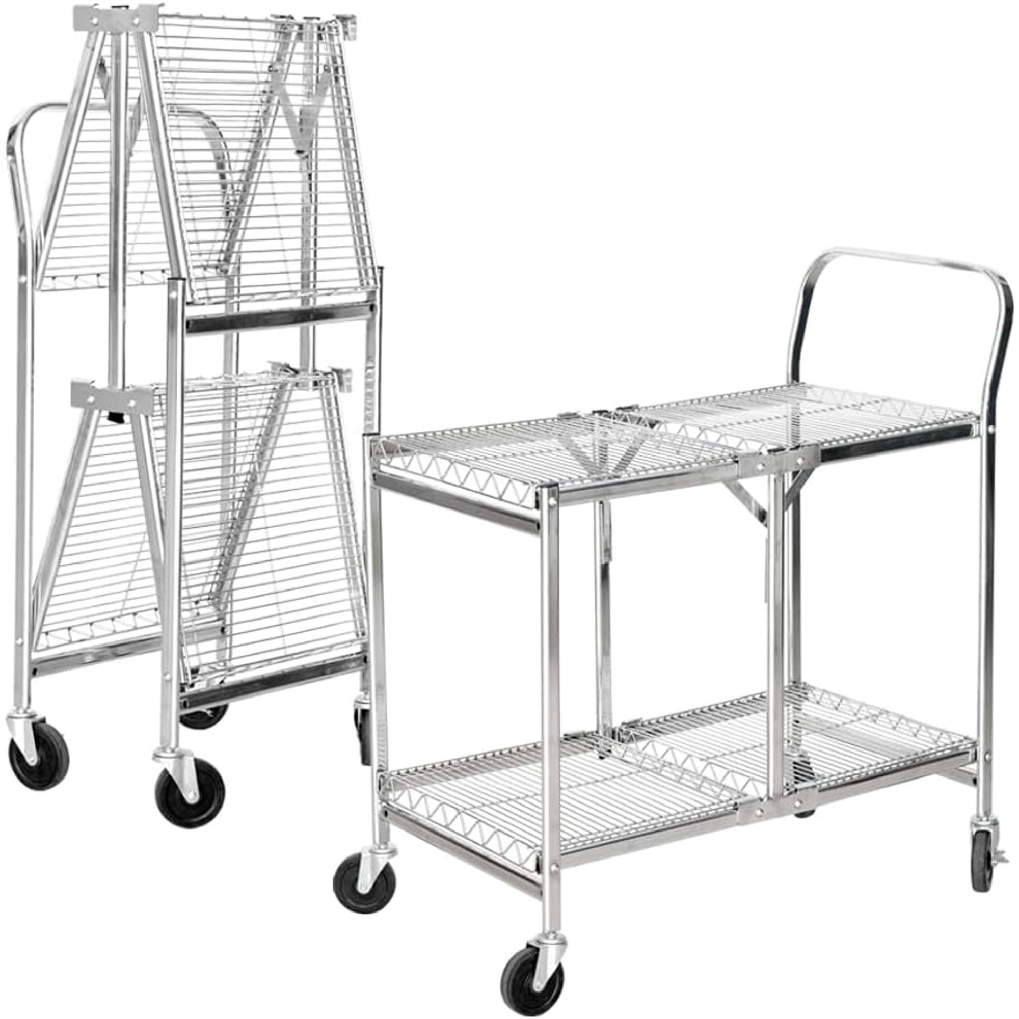 2 Tier Rolling Utility Cart, Collapsible Wire Cart Storage Rack, Portable Folding Cart Service Cart with Wheels for Warehouse Office Home