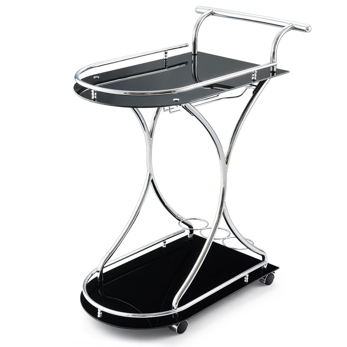 2- Tier Serving Cart Kitchen Bar Wine Tea Cart Glass Shelves w/ Wheels