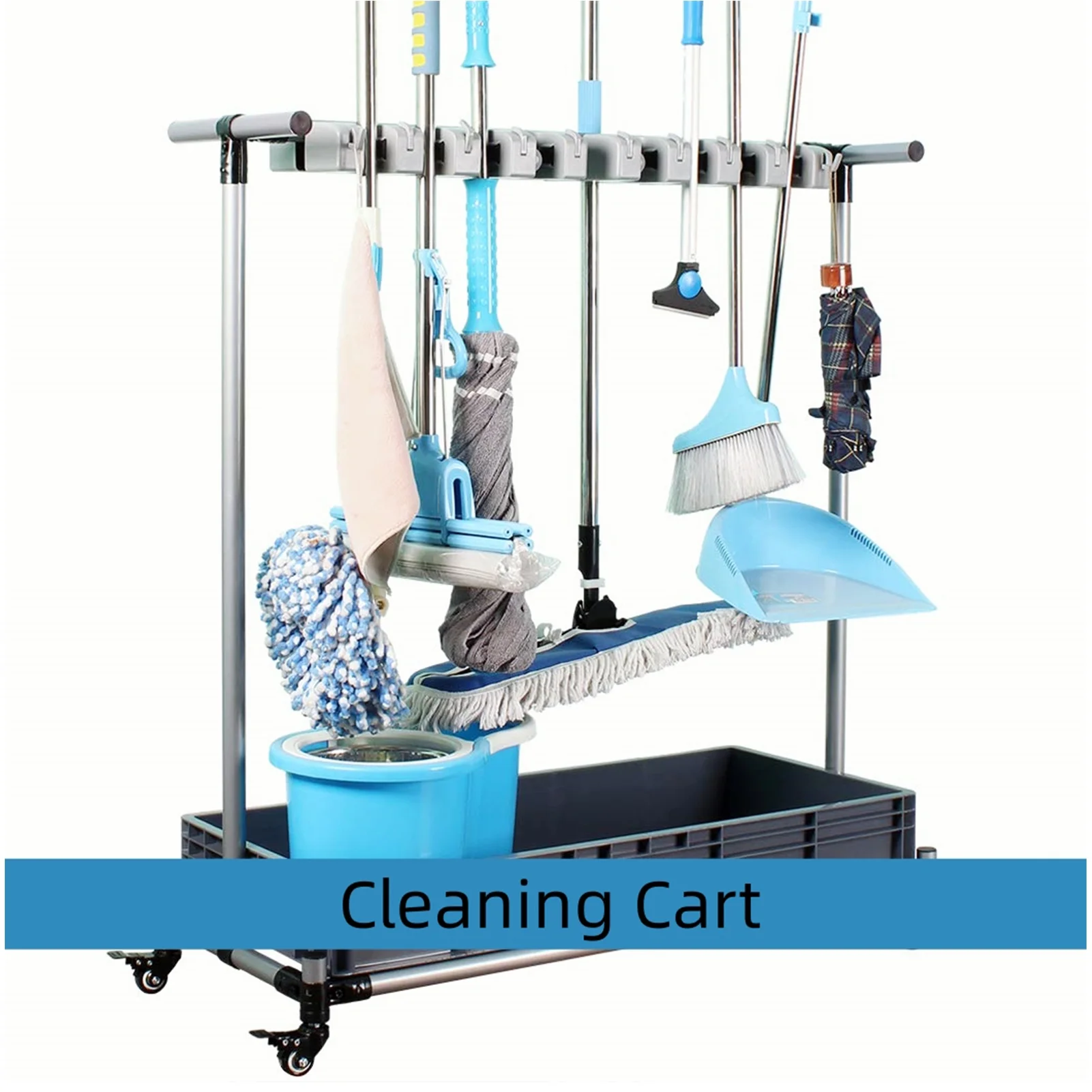 WZTO Broom And Mop Holder | Movable Cleaning Tools Storage Cart With Wheels | Multifunctional Tool Organization For Home, School, Restaurant, Hotel, Garden