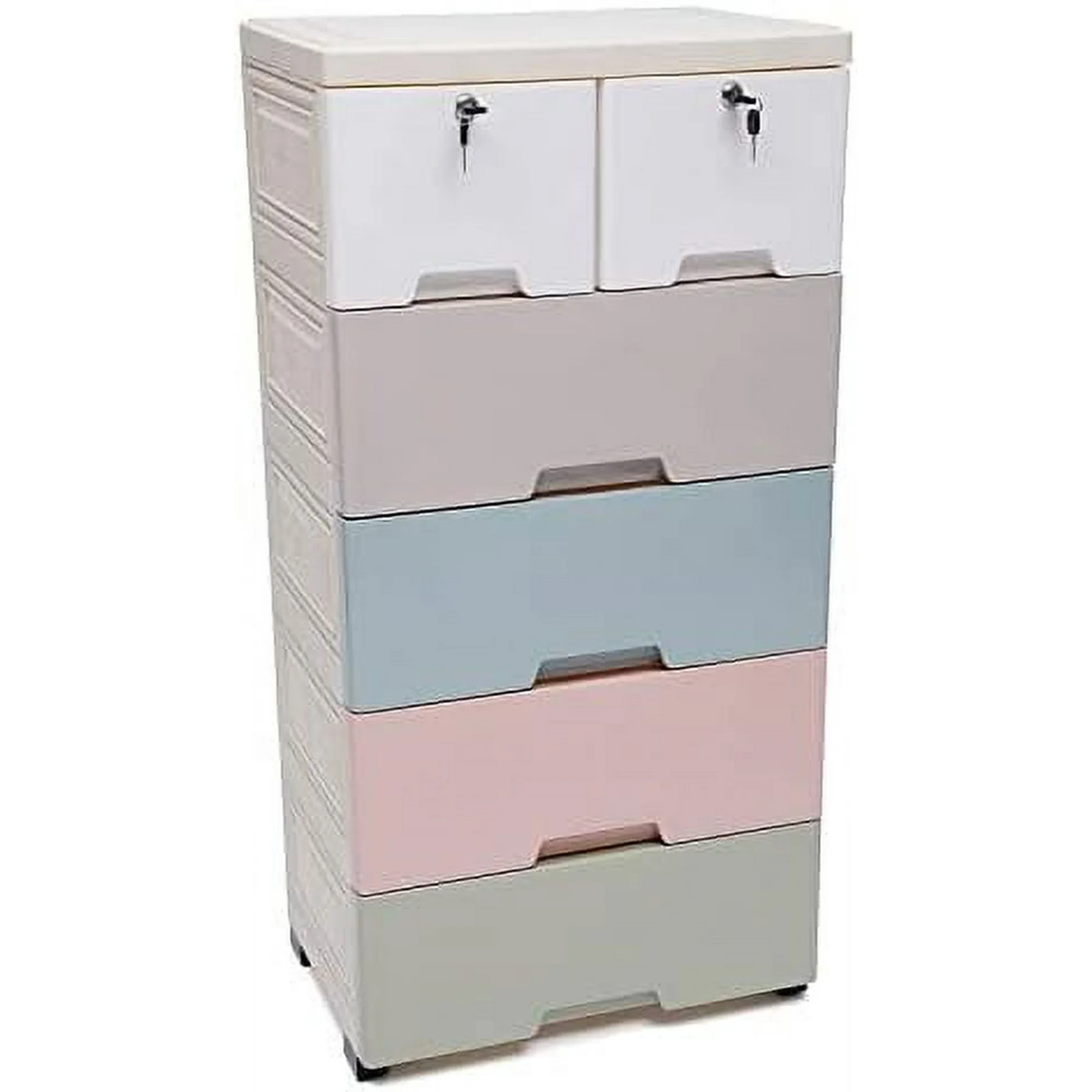 WTYNKAE 5 Tier Dresser w/ 6 Drawers Clothes Organizer with Wheels and Locks Closet Plastic Drawer Cabinet Tall Dresser for Office Home Bedroom Hallway (Macaron)