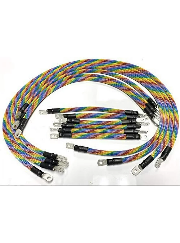 AC/DC WIRE AND SUPPLY 2 Gauge E-Z-GO TXT Golf Cart Battery Cables (13 pc Set) Braided Color Set (Rainbow)