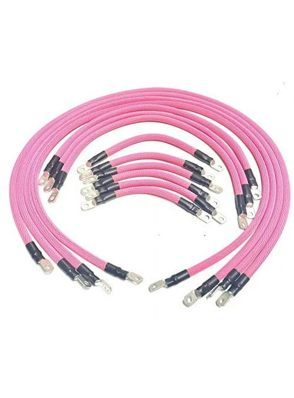 AC/DC WIRE AND SUPPLY 4 Gauge E-Z-GO TXT Golf Cart Battery Cables (13 pc Set) Braided Color Set (NEON Pink)