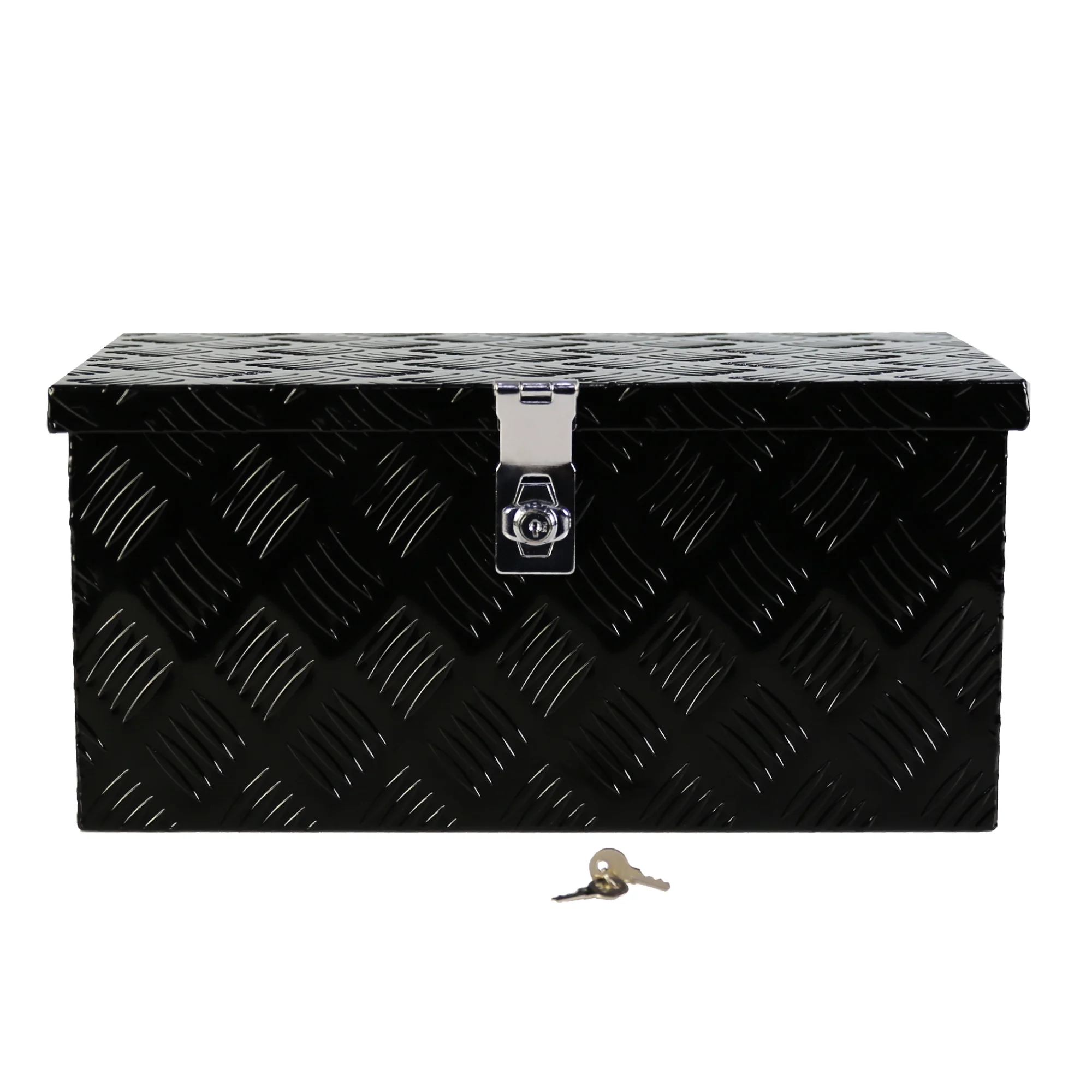 20 Inch Black Aluminum Tool long Box 5 Bar Tread Flat box for Truck Car Outdoor Trailer Pickup Underbody RV ATV Storage Tools Organizer with Lock Side Handle and Keys (20.1"11.8"9.3")