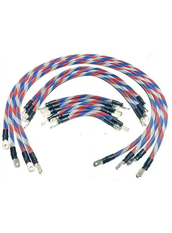 AC/DC WIRE AND SUPPLY 4 Gauge E-Z-GO TXT Golf Cart Battery Cables (13 pc Set) Braided Color Set (Patriot)