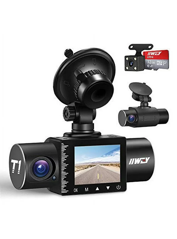 iiwey Dash Cam Front Rear and Inside 1080P Three Channels with IR Night Vision Car Camera SD Card Included Dashboard Camera Dashcam for Cars HDR Motion Detection and G-Sensor for Car, Taxi, Uber