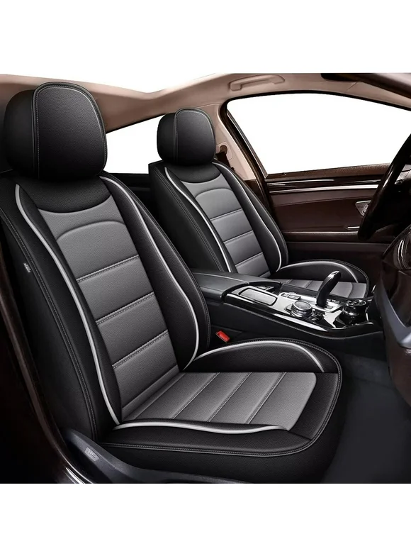 IKABEVEM Front Row Cushion 2Pcs For JEEP Wrangler 2003-2017 Faux Leather Car Seat Covers (Black&Grey)