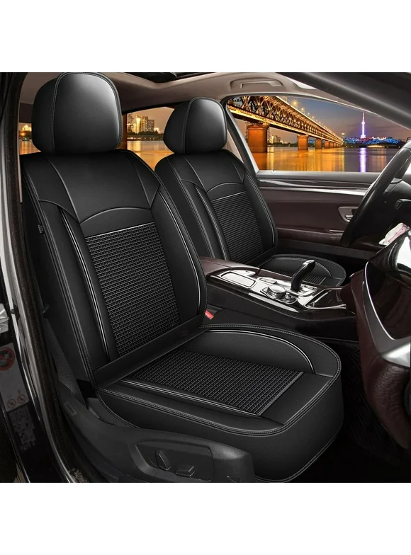 IKABEVEM Front Row Cushion 2Pcs for JEEP Wrangler 2003-2017 Faux Leather Car Seat Covers (Black)