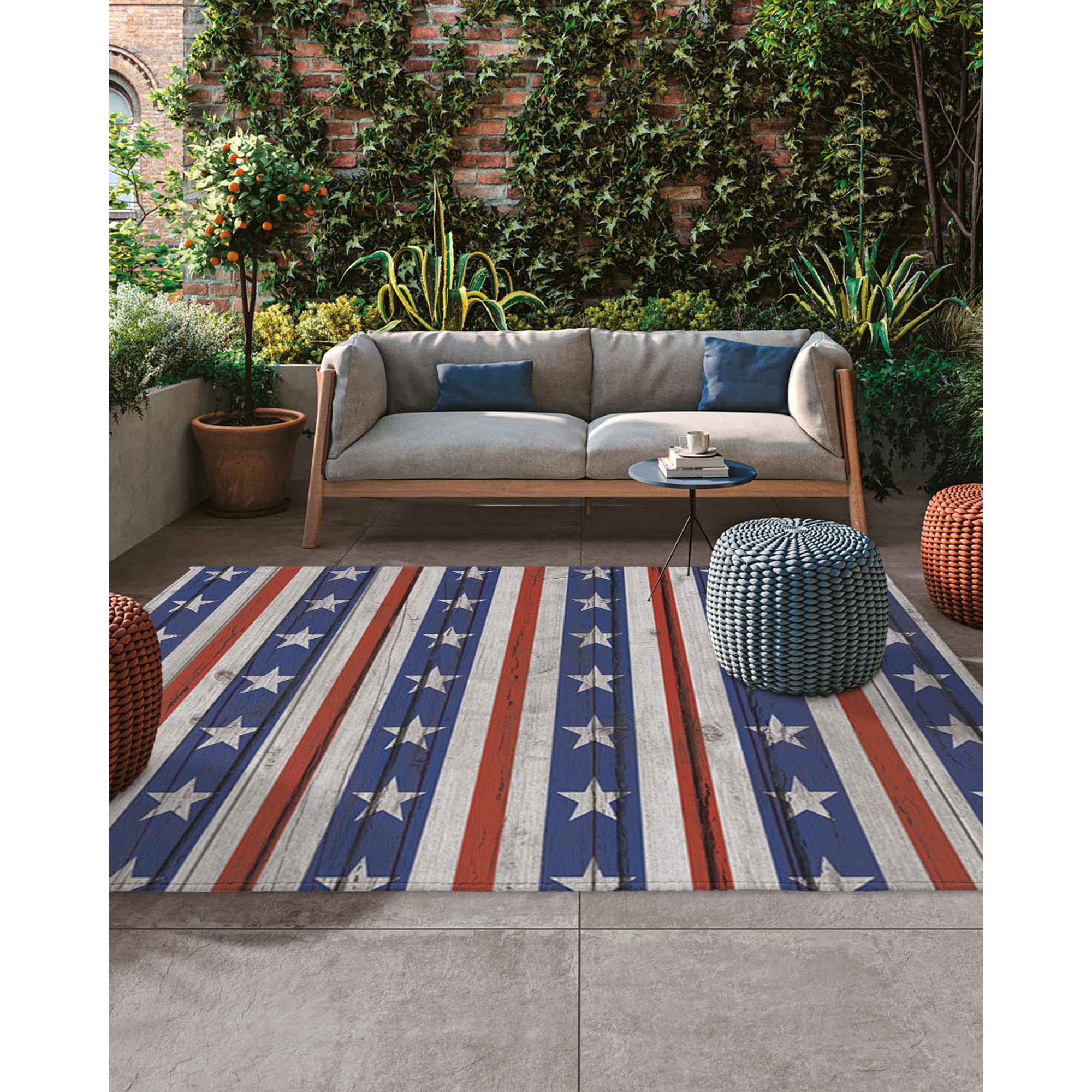 5x8 Outdoor Rug Waterproof for Patio July 4th Stars Stripes Wood Grain,Washable Outdoor Carpet Large Area Rug Patriotic American Flag Patio Rug for Porch,RV,Picnic,Backyard,Deck,Balcony,Beach
