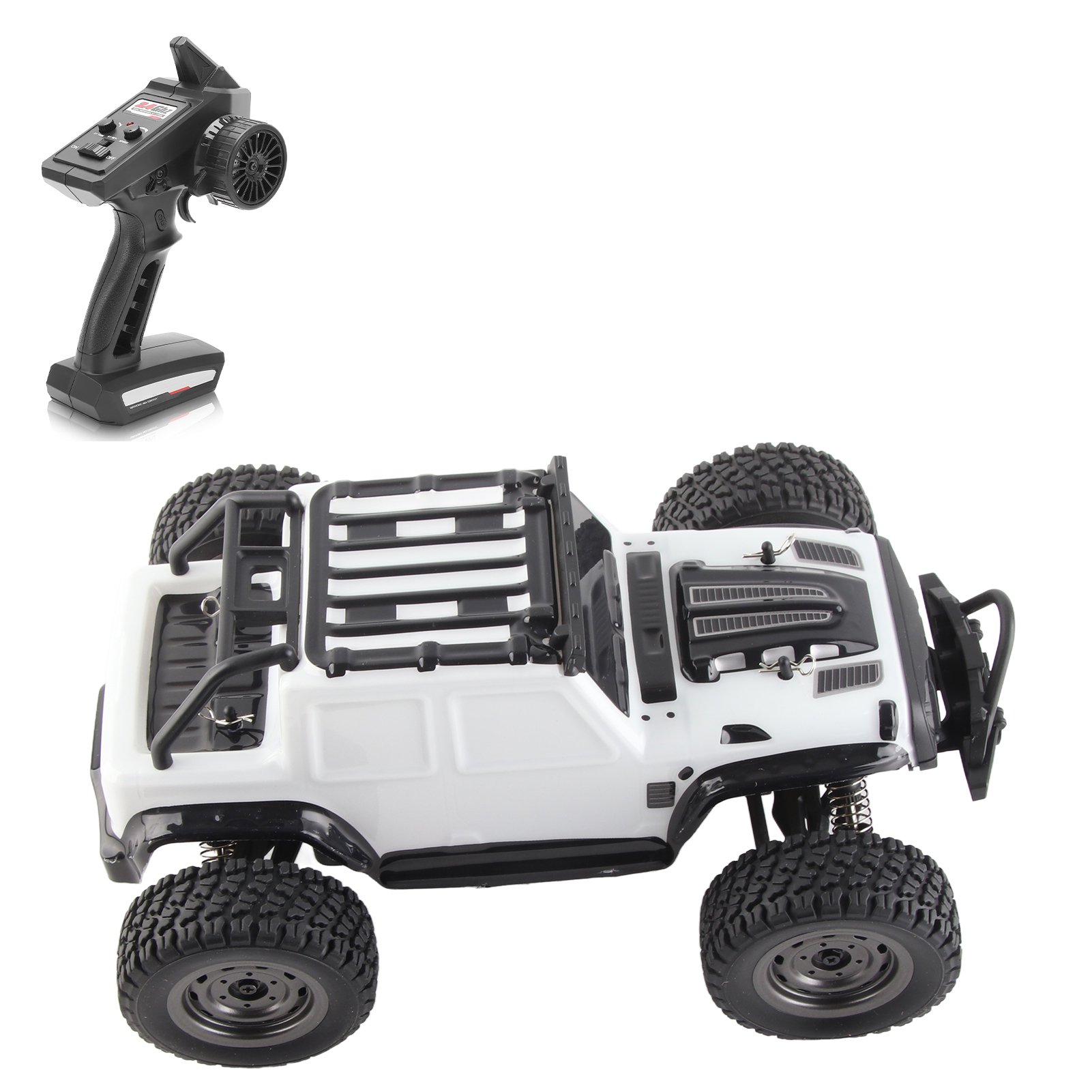 2024 1:16 Full Scale RC Trucks with LED 1/16 Scale Remote Control Crawler 2.4Ghz Off Road Cars for 14+ Kids(White Dual Battery) p
