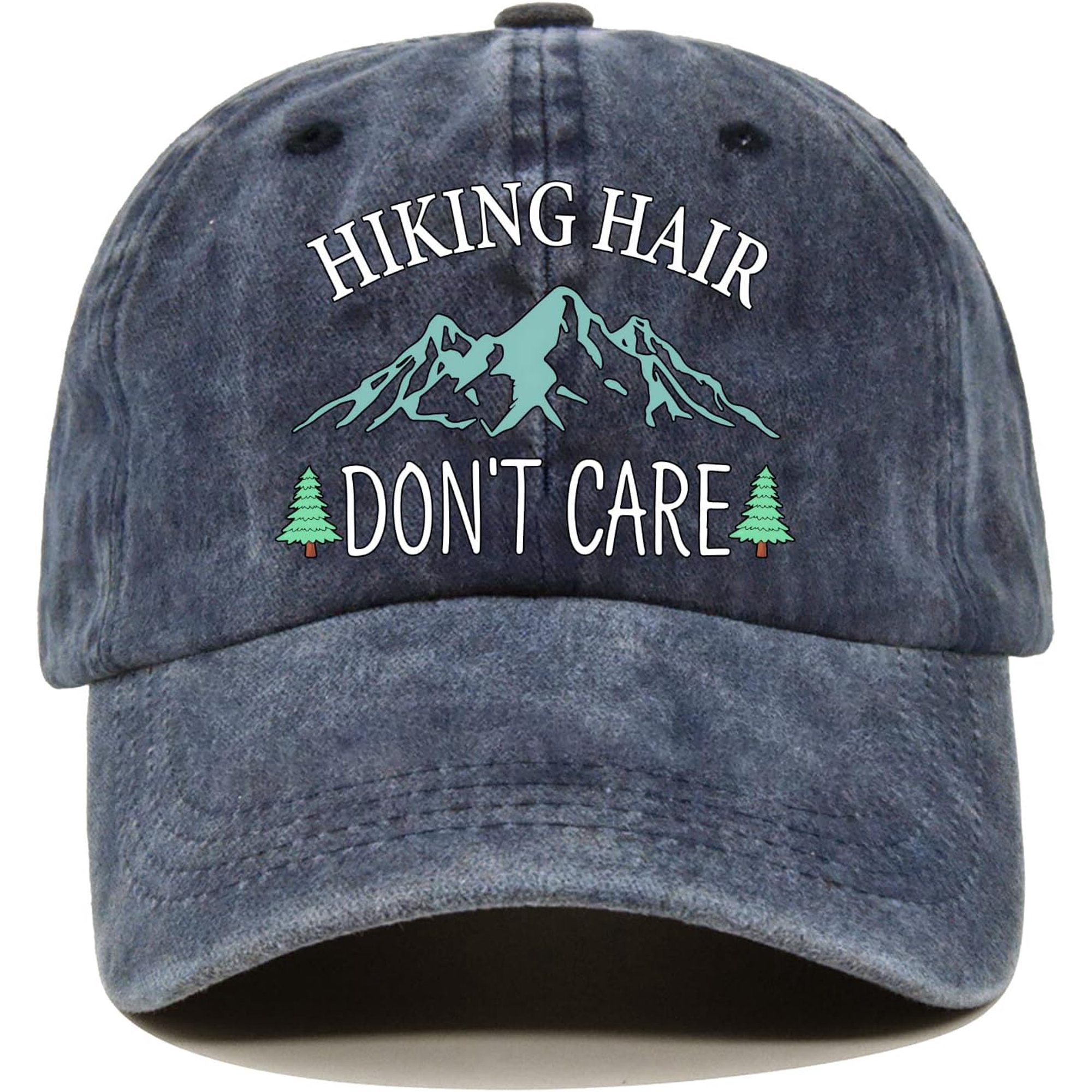Hiking Hair Don't Care Distressed Washed Blue Baseball Cap, Vintage Adjustable Cotton Cap, Retirement Gifts for Men and Women, Hiking Hats for Mom and Dad, Birthday Gifts for Camping Lovers