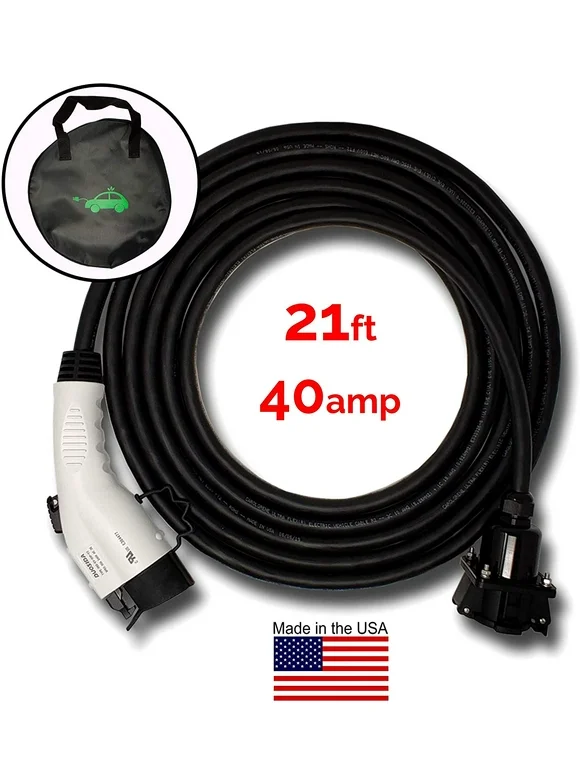 Inteset 21ft 40amp J1772 EV Extension Cord, Made in USA - for Electric Vehicle Charging Stations, Carrying Bag, Ultra-Flex Cable, UL Listed Parts