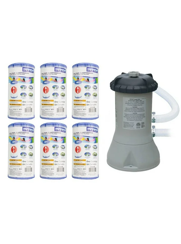 Intex 1000 GPH Pool Filter Pump with Type A & C Filter Cartridge (6 Pack)