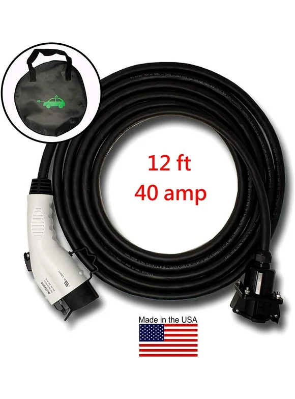 Inteset 12ft 40amp J1772 EV Extension Cord, Made in USA - for Electric Vehicle Charging Stations, Carrying Bag, Ultra-Flex Cable, UL Listed Parts
