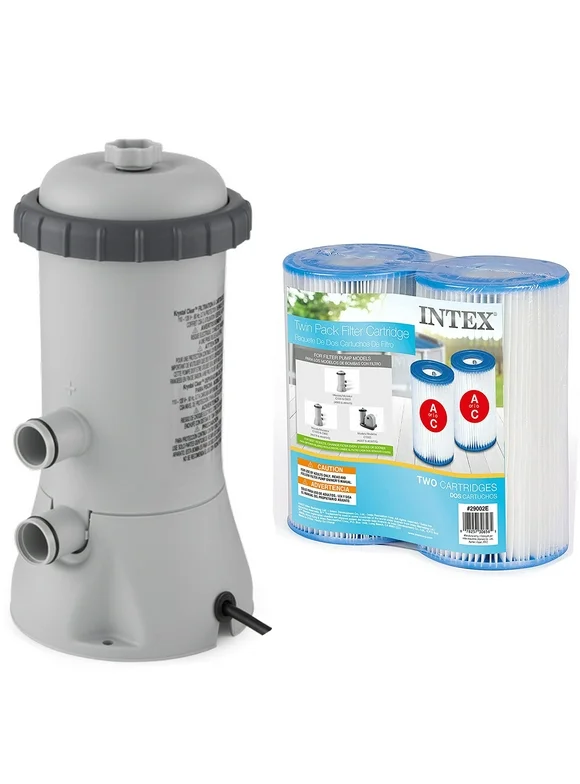 Intex 530 GPH Above Ground Pool Filter Pump & A/C Filter Cartridge (2 Pack)
