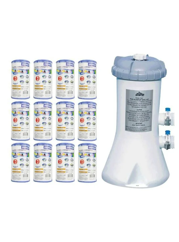 Intex 530 GPH Easy Set Pool Filter Pump w/ GFCI & 12 Type A Filter Cartridges