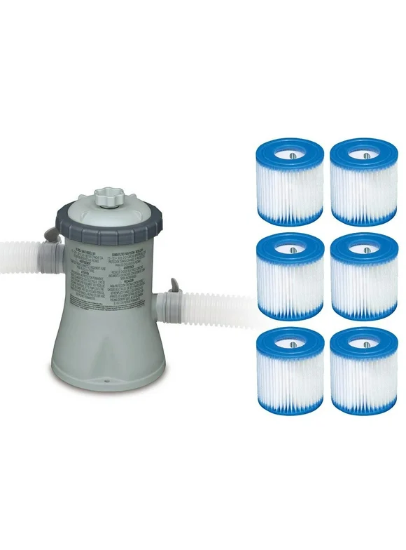 Intex 330 GPH Easy Set Pool Filter Pump & Type H Filter Cartridge (6 Pack)