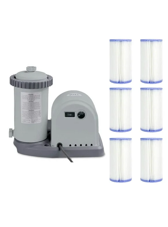 Intex 1500 GPH Krystal Clear Cartridge Filter Pump w/Type A Filters, 6 Pack
