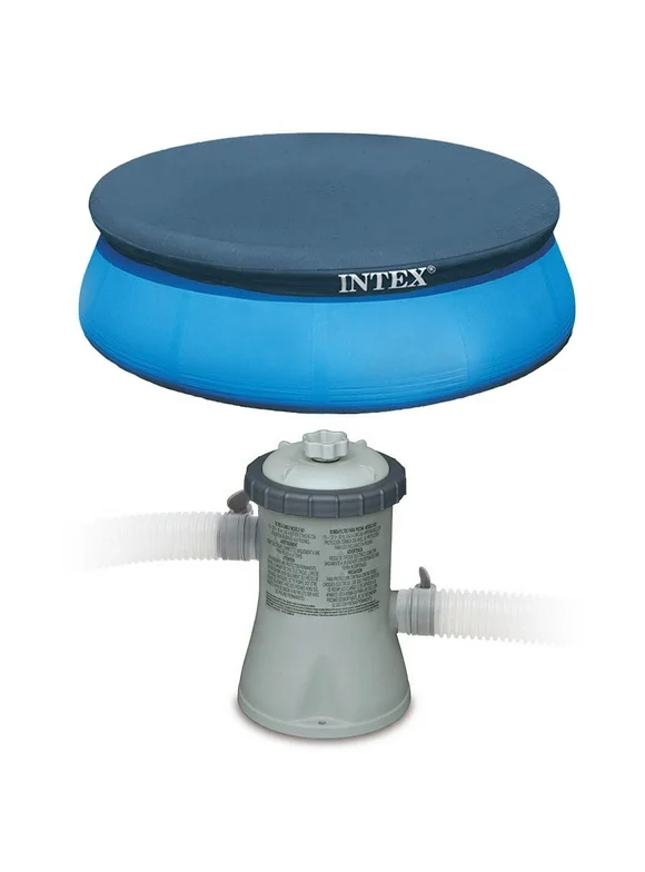 Intex 330 GPH Easy Set Pool Cartridge Filter Pump w/ GFCI + 8 Foot Pool Cover
