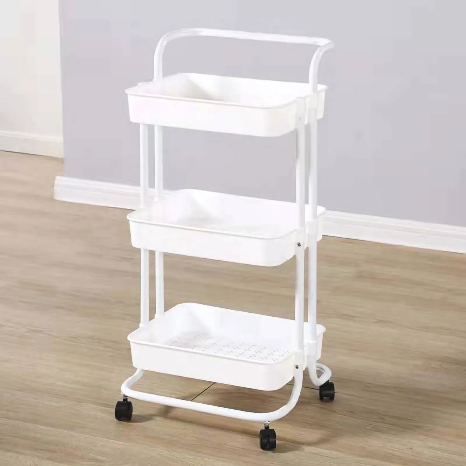 2024 Heavy Duty 3 Tier Utility Rolling Cart Stylish Multifunctional Storage Organizer for Kitchen Bathroom Living Room White m