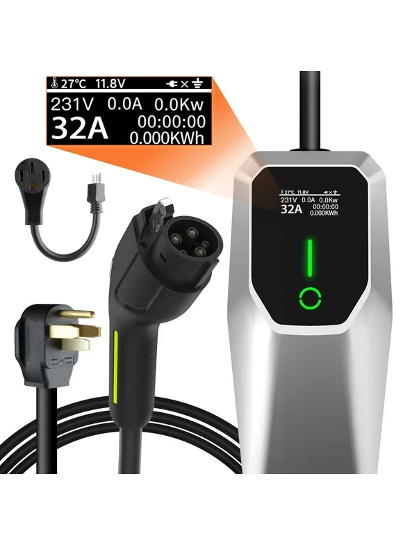 Awesafe 32 Amp Level 1&2 Portable EV Charger ,26FT Cable NEMA 14-50 Plug for Electric Car Home Charging Station 7.68KW