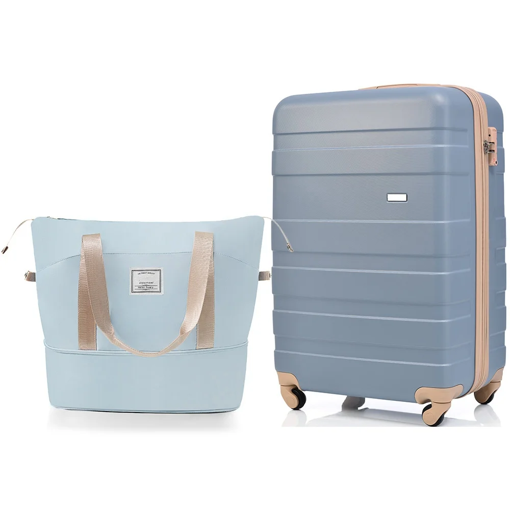 20-Inch Carry-On Luggage with Expandable Travel Bag Set, ABS Hard Shell Two-piece suitcase set, grey green