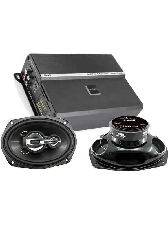 Jensen JA4B-Bundle6 Jensen JA4B JA-Series Class D 4-Channel Amplifier with Bluetooth + (2 Packs) Lanzar MX693 6x9'' 4 Ohms 3-Way Coaxial Car Speakers