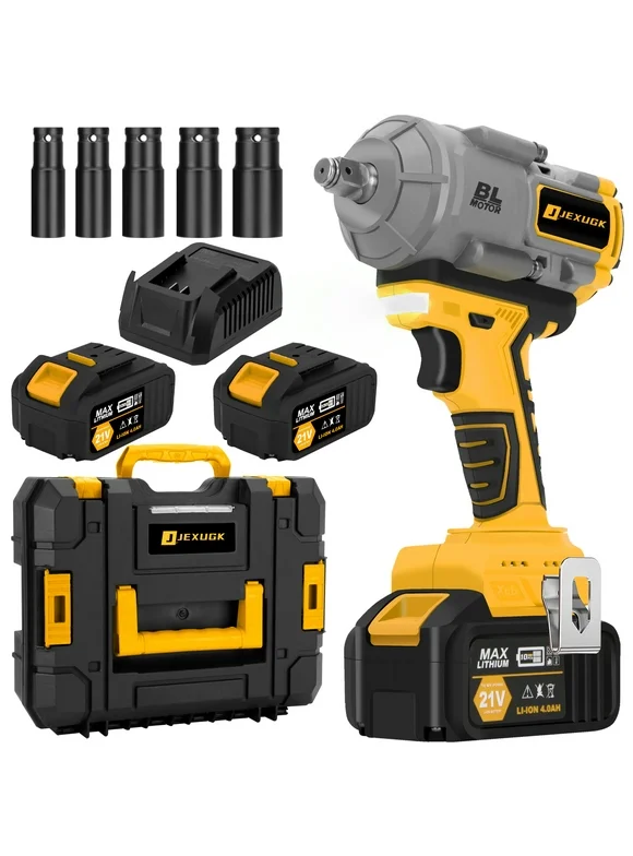 JEXUGK 1000N.m(740ft-lbs) 21V Cordless Impact Wrench,1/2 inch High Torque Impact Gun with 2 x 4.0Ah Batteries & 5 Sockets,Electric Impact Variable Speeds for Car Truck Mower