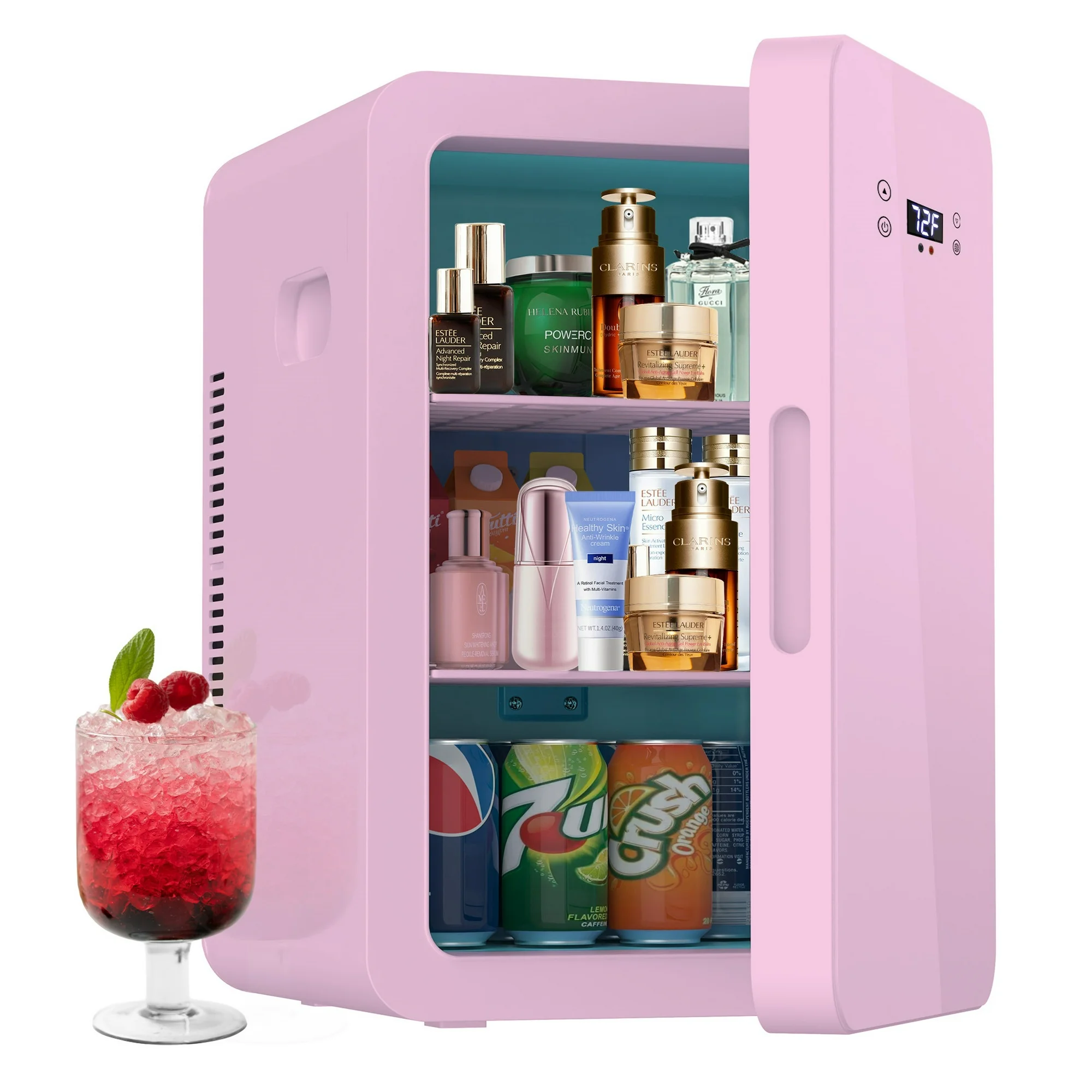 22L/30Can Mini Fridge, Dual-Core Compact Personal Refrigerators, Fast Cooling Portable Refrigerators for Bedroom, Cosmetics, Office Desk and Car (Pink)