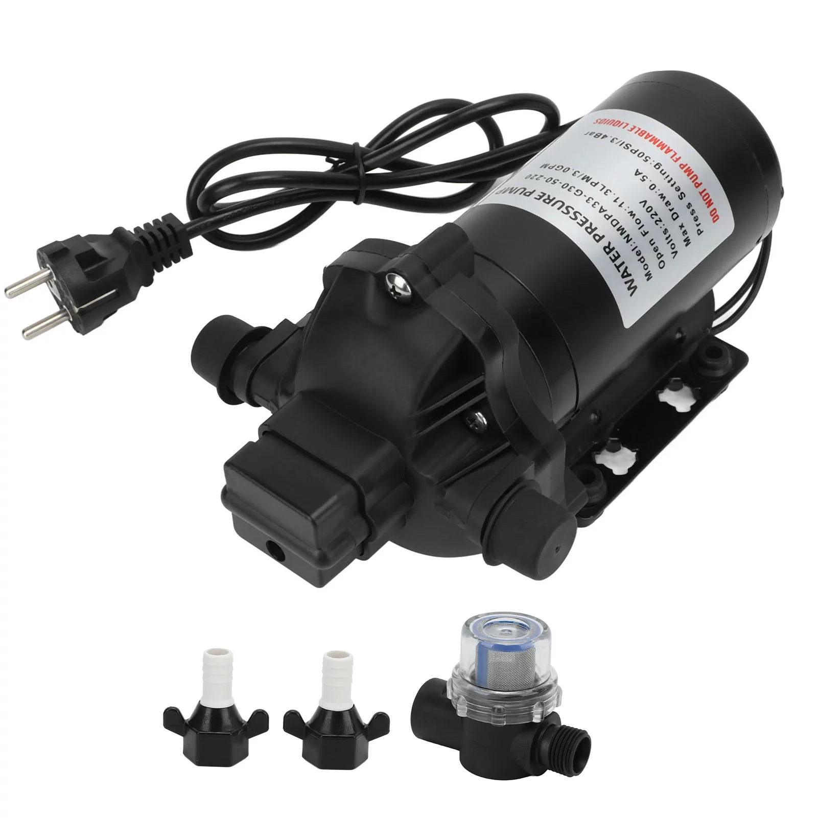 220V 11.3LPM 50PSI Water Pressure Diaphragm Pump Self Priming for Car RV Yacht Caravan Marine Boat
