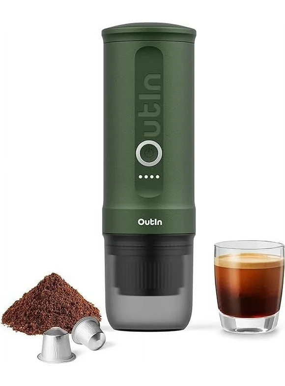 Nano Portable Electric Espresso Machine: 20 Bar, 3-4 Min Self-Heating, Mini 12V/24V Car Coffee Maker with NS Capsule & Ground Options - Ideal for Camping, Travel, RV, Hiking, Office (Forest Green)