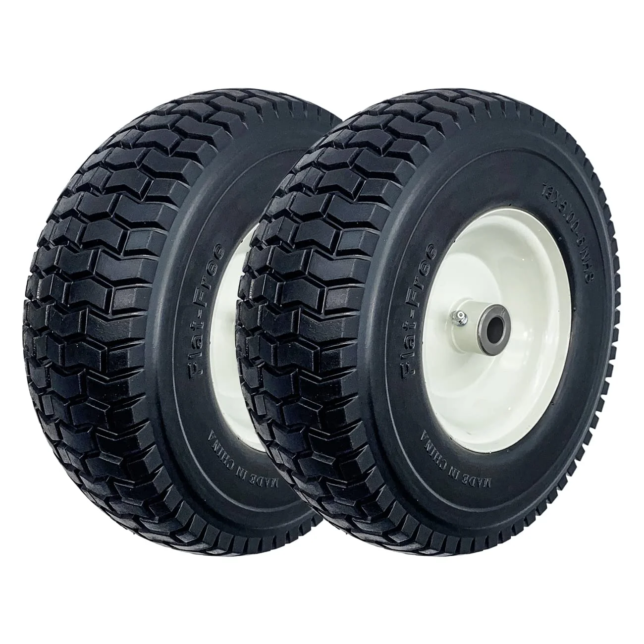 2-Pack 13x5.00-6 Flat-Free Tire with Rim,3"Centered Hub with 3/4" Bushings,w/Grease Fitting400lbs Capacity,13x5-6 No-Flat Solid Rubber Turf Wheel,for Riding Lawn mower,Garden Cart,Wheelbarrow C27