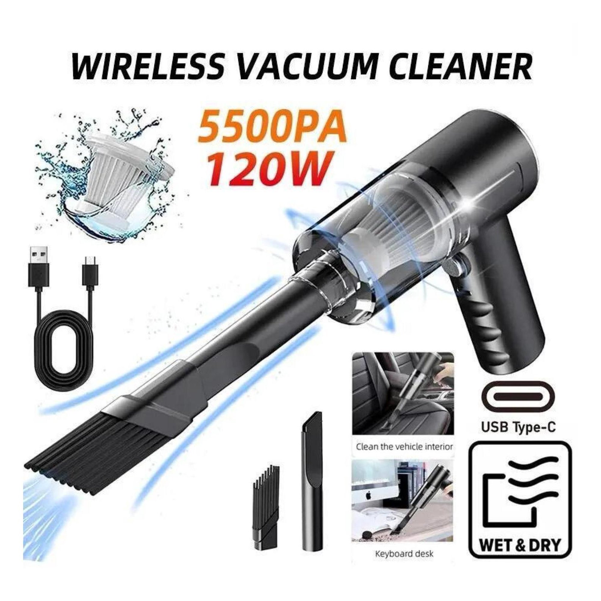2In1 Wireless Vacuum Cleaner Dual Use for Home and Car 120W High Power Powerful