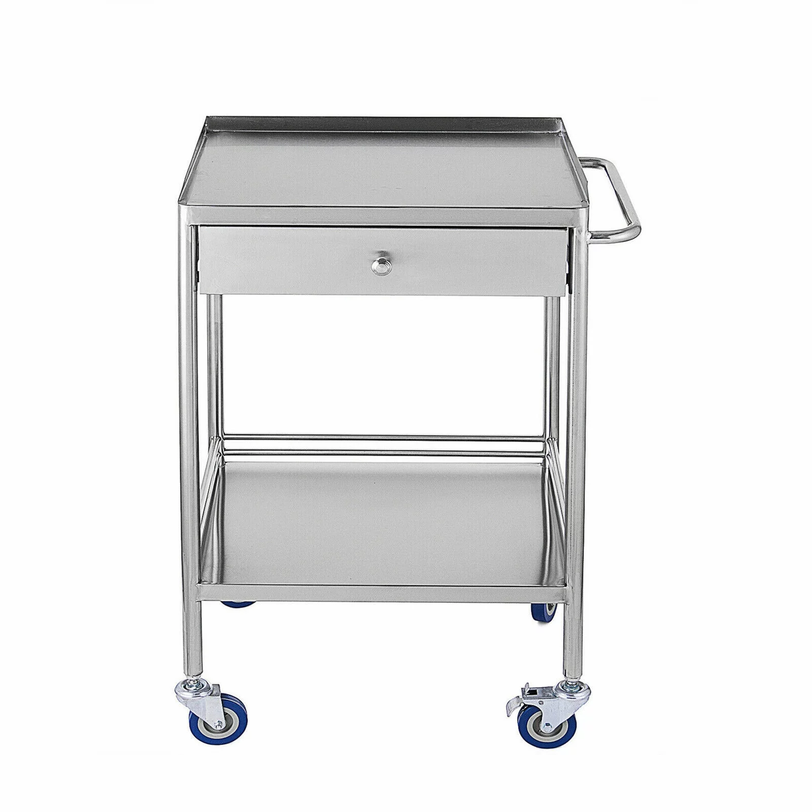 2-Layer Lab Medical Vehicle with Single Drawer Medical Trolley 2 Tiers Stainless Steel Dental Lab Mobile Trolley Cart W/ Drawer