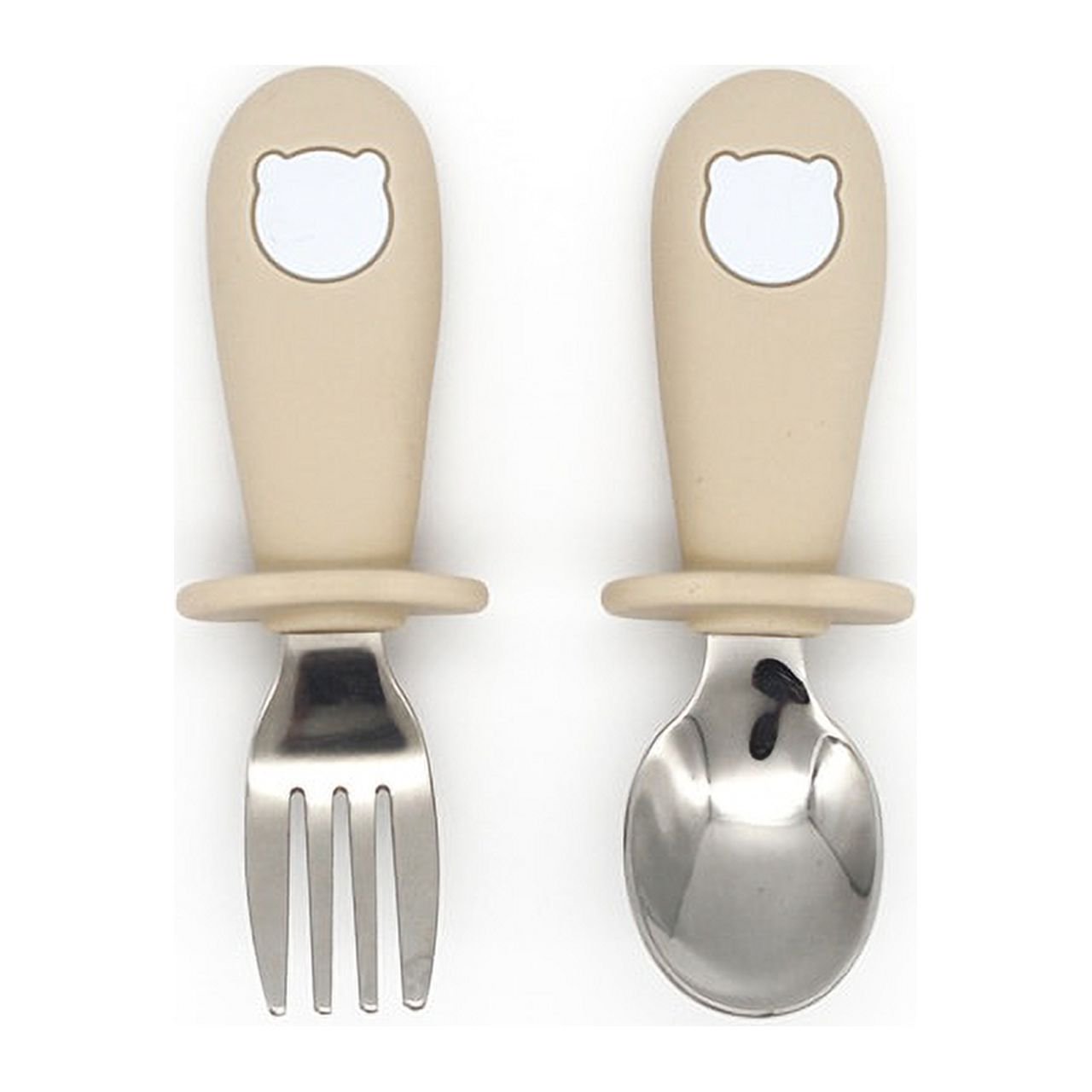 2PC/Set Baby Silicone Tableware Children Stainless Steel Dinnerware Toddler Cutlery Cartoon Infant Food Feeding Spoon Fork