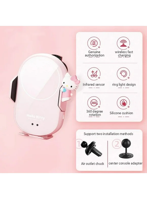 Kawaii Sanrio HelloKitty Car Mobile Phone Bracket Cute Anime Car Outlet Wireless Charger Girl Navigation Universal Bracket Gift