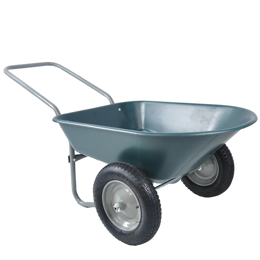 2-Wheel Wheelbarrow, Heavy Duty Garden Cart, Two Wheeled Trolley with 2 Large 15" Inflatable Wheels, 300 lb Load Home Utility Dump Cart For Outdoor Lawn Yard Farm Ranch 57.87 "x 28.35" x 26 "