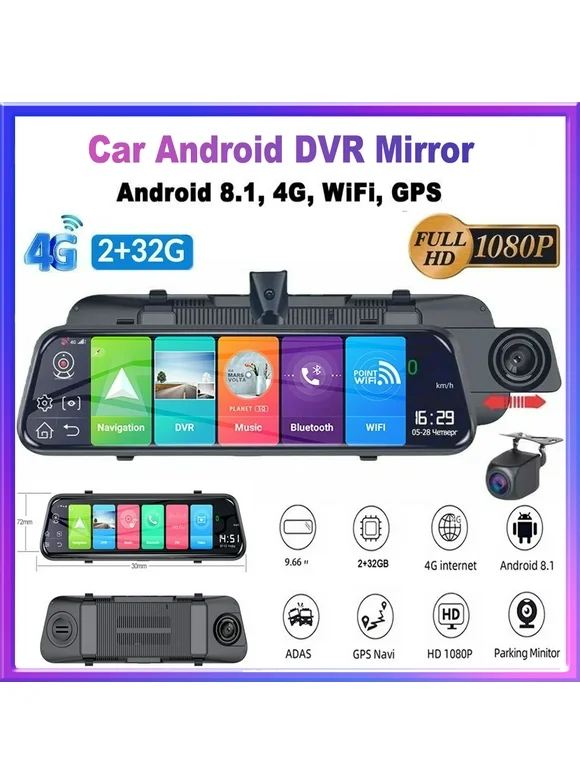 Car DVR Mirror Android / Car Recorder GX9 Android 8.1, 4G, Wi-Fi, GPS navigation, 2 cameras