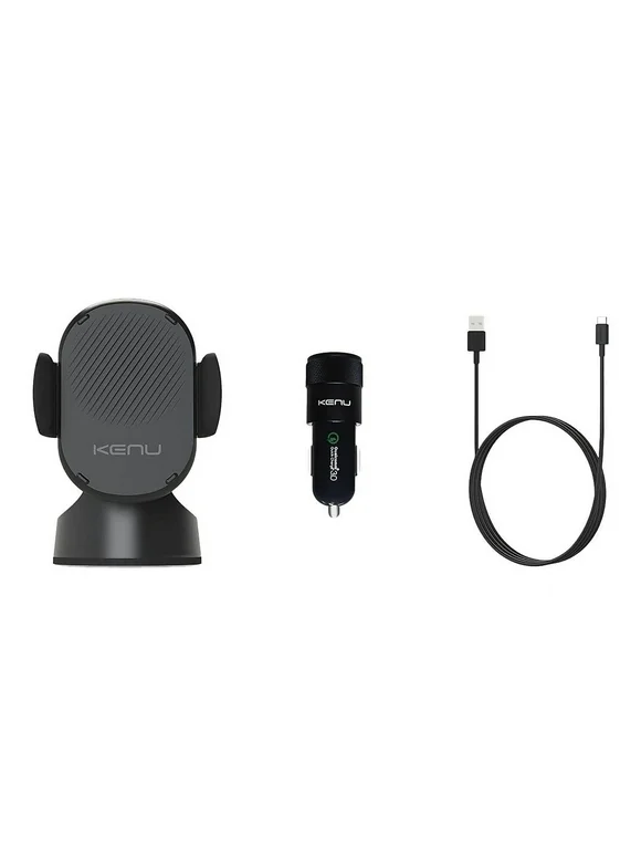 Kenu Airbase Car Phone DHF10Mount Wireless Charger - Windshield, Dashboard, Desk Phone Holder - Suction Cup and 360 Degree Pivot, Qi Fast-Charging - Use with Latest iPhones, Samsung and Androids
