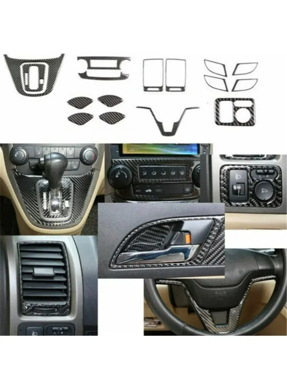 Car Interior Accessories 16 piece soft genuine carbon fibre steering wheel cover side air outlet cab interior complete trim for Honda CR-V 2007-2011 car interior moulding C18