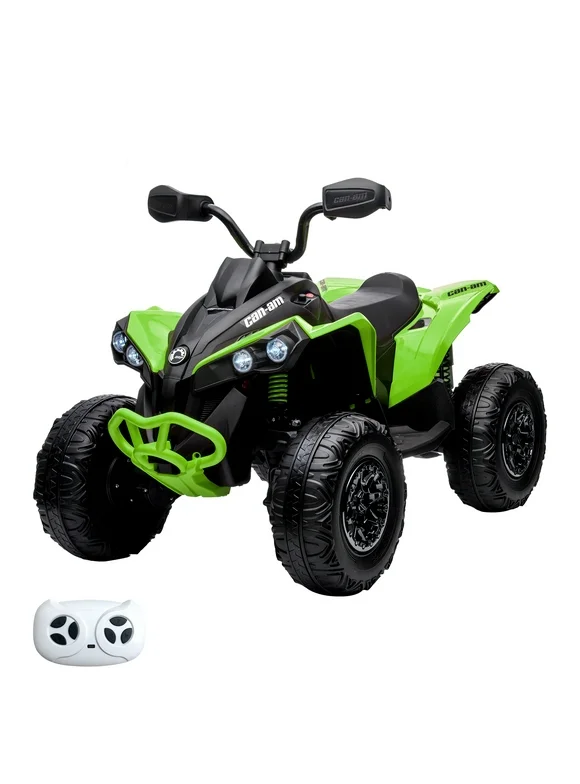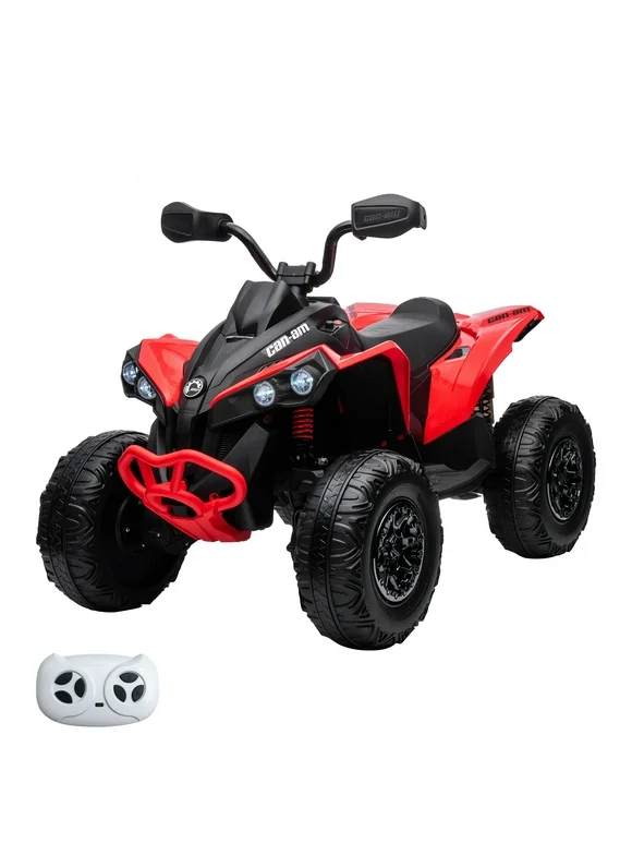 Kids 4 Wheel ATV, 12V Ride on Car Toy Quad Electric Vehicle with Remote Control, LED Lights, Spring Suspension, Music, USB & AUX