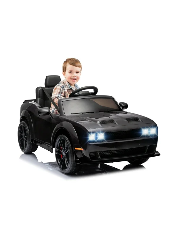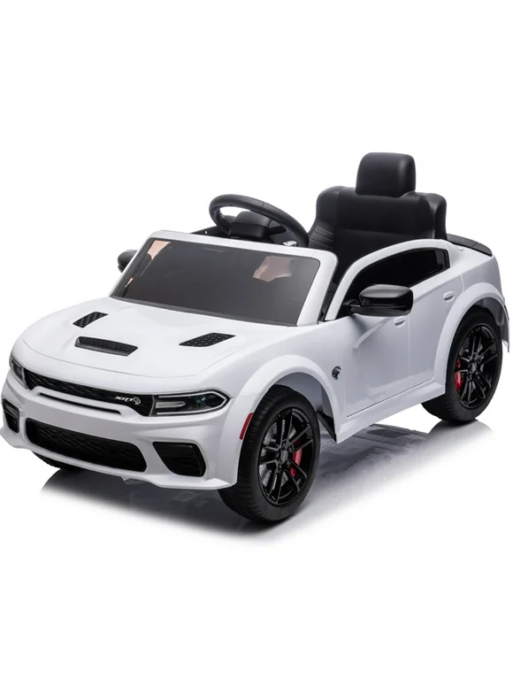 Kids Electric Cars With Remote Control, Licensed Dodge Charger 12V Ride on Cars for Boys Girls, Battery Powered Ride on Toys with Bluetooth, USB, MP3, 4 Wheel Suspension, White