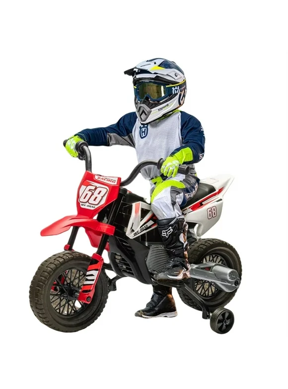 Kids Electric Motorcycle Dirt Bike,12V Ride On Motorcycle Car for Kids,Off-Road Street Bike with Training Wheels, Spring Suspension, High/Low Speeds