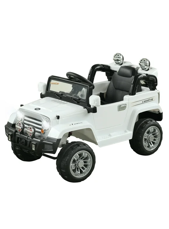 Kids Ride-On Car, Off-Road Truck With Mp3 Connection, Working Horn, Steering Wheel, And Remote Control, 12V Motor, White