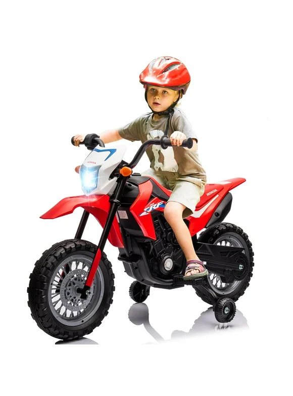 Kids Ride on Motorcycle, Electric Battery Powered Rechargeable Motorbike 6V LicensedHon-daKids Car, Detachable Training Wheels, Engine Sounds, Gift for Children