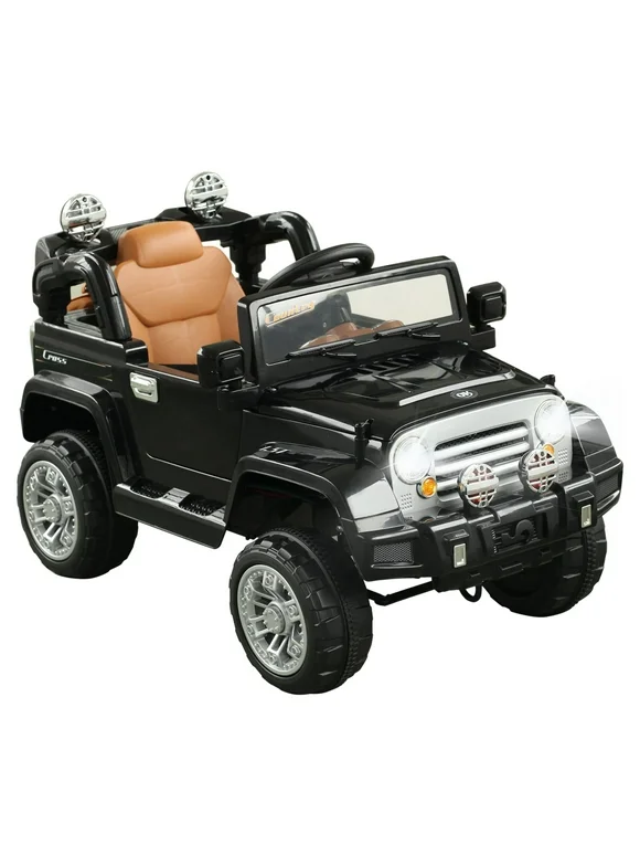 Kids Ride-on Car, Off-Road Truck with MP3 Connection, Working Horn, Steering Wheel, and Remote Control, 12V Motor, Black