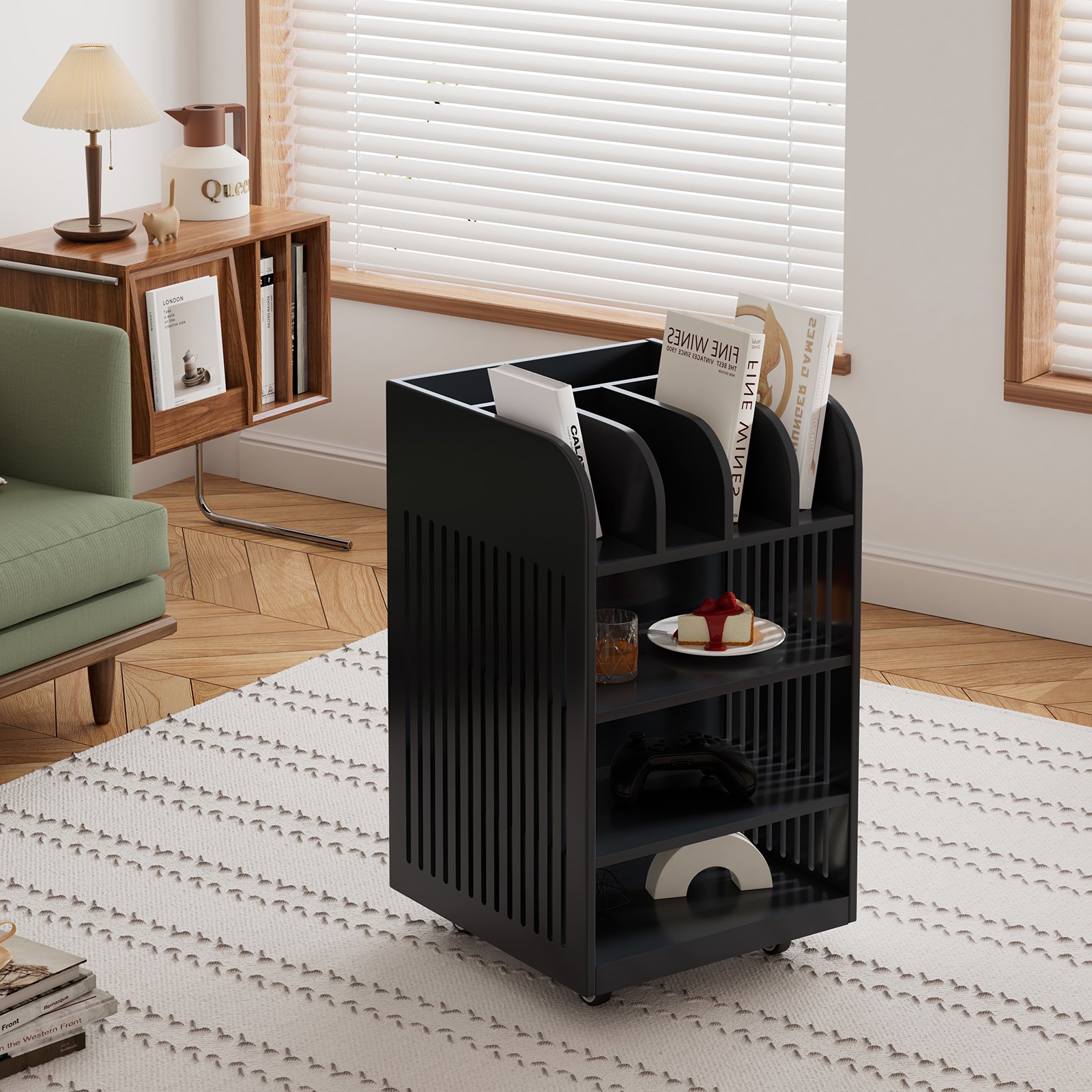 Deiokin 4 Tier Rolling Utility Cart, Kitchen Island Cart with Spice Rack & Locking Casters, Bar Carts Serving Tray for Living Room, Kitchen